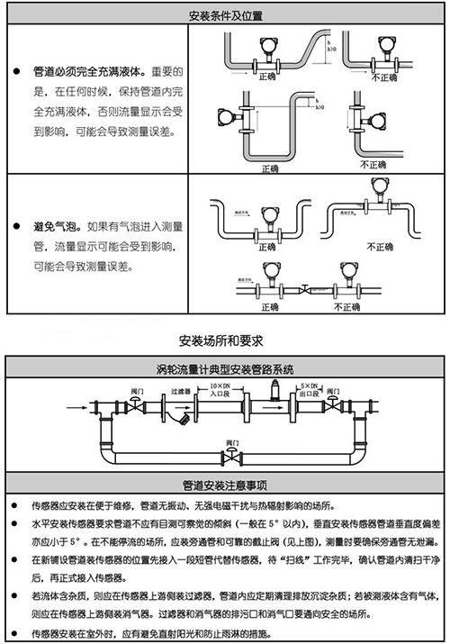 12、直管段要求:氣體:上游直管段應(yīng)≥10DN,下游直管段應(yīng)≥5DN;液體:上游直管段應(yīng)≥20DN,下游直管段應(yīng)≥5DN;插入式:上游直管段應(yīng)≥20DS,下游直管段應(yīng)≥7DS(DS為管道實測內(nèi)徑)