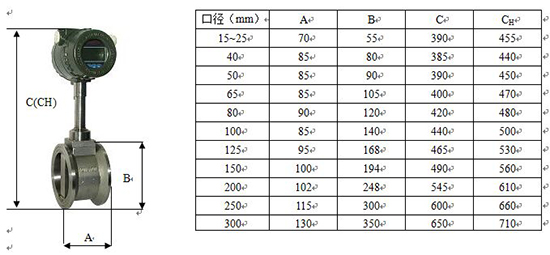 測氨氣流量計選型表: