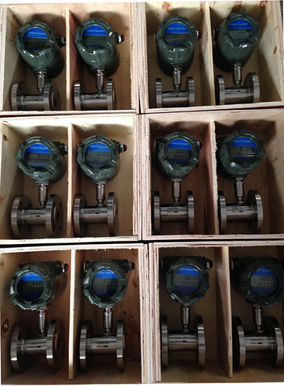 渦輪流量計原理是感應線圈和永久磁鐵一起固定在殼體上。當鐵磁性渦輪葉片經過磁鐵時,磁路的磁阻發(fā)生變化,從而產生感應信號。信號經放大器放大和整形,送到計數(shù)器或頻率計,顯示總的積算流量。同時將脈沖頻率經過頻率-電壓轉換以指示瞬時流量。渦輪流量計的葉輪的轉速正比于流量,葉輪的轉數(shù)正比于流過的總量。渦輪流量計的輸出是頻率調制式信號,不僅提高了檢測電路的抗干擾性,而且簡化了流量檢測系統(tǒng)。它的量程比可達10:1,精度在±0.2%以內。慣性小而且尺寸小的渦輪流量計的時間常數(shù)可達0.01秒。