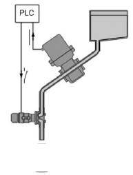 在灌裝系統(tǒng)中用到快速切斷閥(定量閥)來控制灌裝的啟停??焖偾袛嚅y的控制原理:當(dāng)電磁閥接收到PLC的輸出信號(由PLC采集灌裝流量計的脈沖信號后處理的輸出信號)時開始動作,通過執(zhí)行機構(gòu)帶動閥桿和閥芯向上運動,閥芯和閥座分開,流體通過閥座進入灌裝管道,開始灌裝,當(dāng)電磁閥接收到PLC輸出信號關(guān)閉閥門時,閥桿向下運動,帶動閥芯向下運動,使閥芯和閥座接觸,從而切斷流體達到結(jié)束灌裝。本應(yīng)用中控制閥的閥桿在管道中,流體從上向下流經(jīng)整個閥體,閥桿的動作行程分兩級,對應(yīng)于小流量和較大流量。