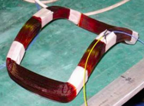 由此可見,電鍍廢水流量計正常運行需要有穩(wěn)定的磁場,而磁場正是靠傳感器線圈內(nèi)的 勵磁電流來產(chǎn)生的。勵磁線圈如圖2所示。