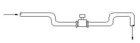 4.當(dāng)向下管道長(zhǎng)度超過(guò)5m時(shí),在傳感器后安裝一個(gè)虹吸管或一個(gè)放氣閥。以避免低壓而可能造成的對(duì)測(cè)量管襯里的破壞。保證滿管,減少含氣量。