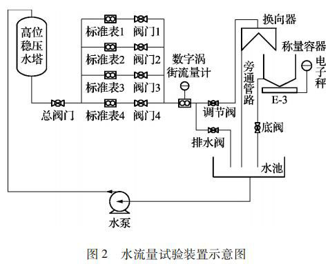 在試驗(yàn)裝置管路出口處裝有換向器,用來改變流體的流向,使水流入稱量容器或者旁通管路而不改變流量。換向器啟動(dòng)時(shí),觸發(fā)計(jì)時(shí)控制器,以保證水的重量和時(shí)間的同步測(cè)量。