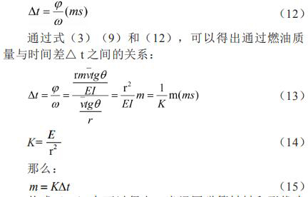 從式(15)中可以得出,當(dāng)渦圈彈簧材料和形狀確定和渦輪外形尺寸確定的情況下,時間差△ t 與通過的燃油質(zhì)量 m 成正比例關(guān)系,則測量起始脈沖信號與終止脈沖信號的時間差△ t,即可得出通過流量計的燃油質(zhì)量 m。