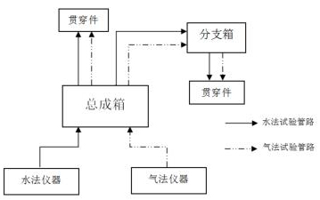 集中區(qū)域內的貫穿件試驗實施前,連接加壓管線時,可直接將加壓管線攜帶至分支箱放置處,用快速接頭連接分支箱與貫穿件加壓口,保持分支箱控制閥為開,利用總成箱控制閥作為充卸壓控制閥進行試驗。