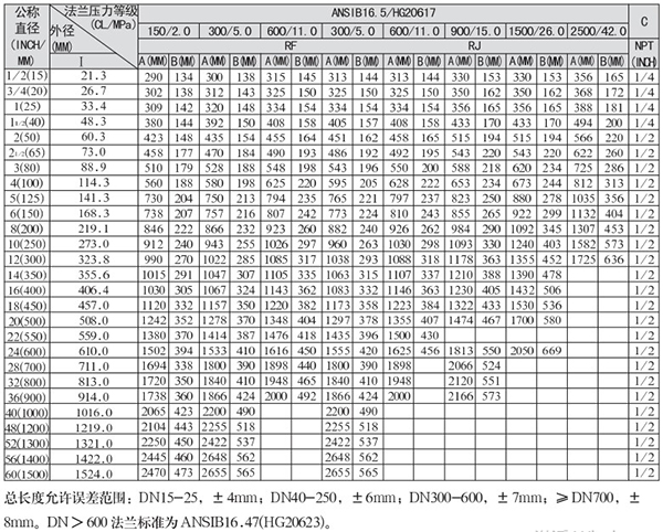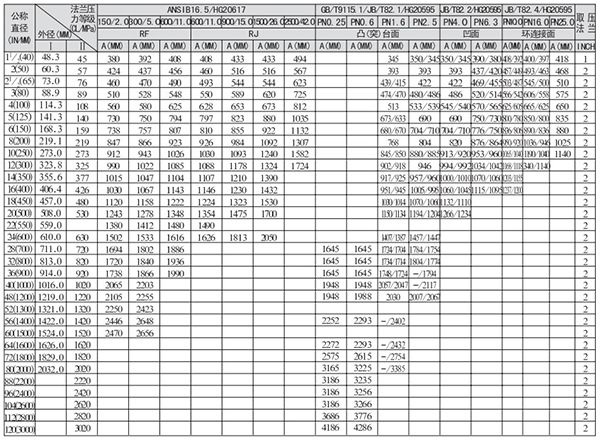 3.DN>600法蘭標準為ANSIB16.47(HG20623)