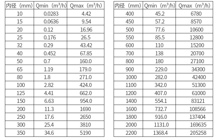 您可以根據(jù)自身工藝管道的實際流量對應(yīng)上表中的流量來選擇相應(yīng)口徑規(guī)格的流量計,盡可能選擇與工藝管道相同口徑規(guī)格的流量計。