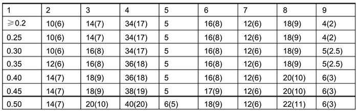 3、 上表括號(hào)外的數(shù)字為“附加相對(duì)極限誤差為零”的數(shù)值,括號(hào)內(nèi)的數(shù)字為“附加相對(duì)極限誤差為±0.5%”的數(shù)值。即直管段長(zhǎng)度中有一個(gè)采用括號(hào)內(nèi)的數(shù)值時(shí), 流量測(cè)量的極限相對(duì)誤差 τ Q/Q。應(yīng)再算術(shù)相加 0.5%亦即( τ Q/Q+0.5)%