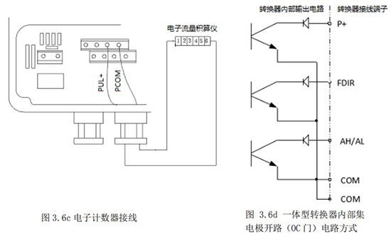 1.1.5 頻率(脈沖)、上下限報(bào)警、流向標(biāo)示等輸出均為集電極開(kāi)路的電平輸出信號(hào)。