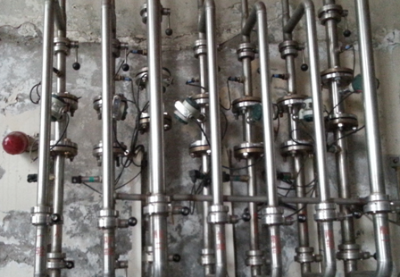 儀表的傳感器應遠離外界磁場,如不能避免,應采取必要的措施。為了檢修時不至于影響液體的正常輸送,應在傳感器兩端的直管段外安裝旁通管道。傳感器露天安裝時,要做好防水處理。傳感器與顯示儀表的接線,應根據(jù)放大器的電源來選擇接線方式。