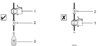 4.2.2 安裝位置。安裝在閥門附近,灌裝流量計不能安裝在控制閥的下游(圖6),如果裝在控制閥的下游,在一個灌裝周期結(jié)束后,傳感器的測量管道完全排空,這樣會嚴(yán)重影響下個周期的測量。