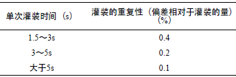 表1 灌裝時間和重復(fù)性的關(guān)系