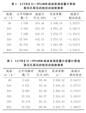 天燃氣流量計檢定過程中使用的取壓孔在表體的下部或側(cè)部。為了弄清楚取壓方式對流量計檢定準確度的影響,分別在流量計表體取壓孔取壓和管道取壓孔取壓兩種取壓方式下進行了流量計檢定試驗。
