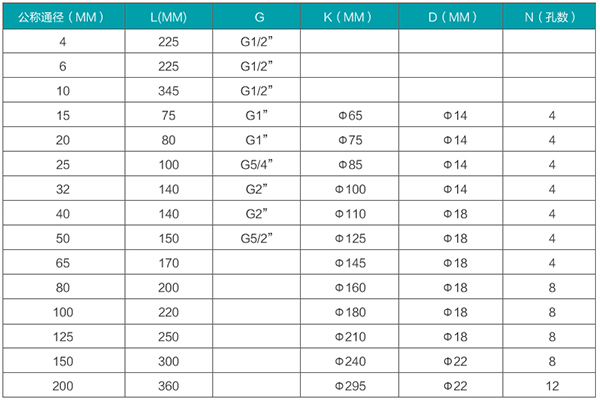 | DN40 | 2~20 | 1~20 | 螺紋安裝、6.3Mpa | 法蘭安裝、2.5MPa | 4.0、6.3、12、16、25 |