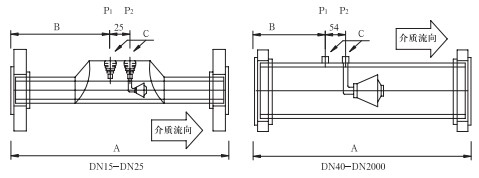 取壓口法蘭公稱直徑(標準設(shè)計)為DN40,也可以依據(jù)用戶要求選取法蘭直徑。
