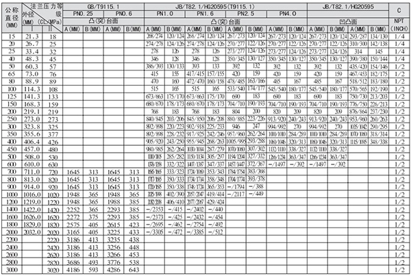 3.DN>600法蘭標準為ANSIB16.47(HG20623)