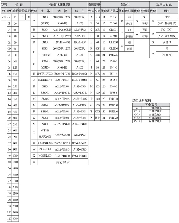 3.管道式SO、WN法蘭連接(VS、VW)選型