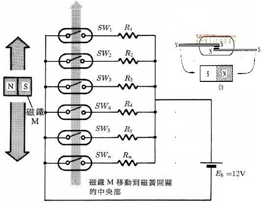 磁變送器(干簧管變送器):與磁開關(guān)的原理相似,它是捆綁在浮筒外面。當(dāng)浮筒里面的浮子隨著液位變化時,上下移動,浮子中的磁鋼所在的位置將改變干簧管中磁開關(guān)的狀態(tài)(閉合),只有在磁鋼作用范圍內(nèi)的干簧管閉合,其它都處于開路狀態(tài),從而改變回路的電阻值,或者說是改變了輸出回路的阻值。浮子的位置相當(dāng)與電位器的滑動點,隨著浮子的位置變化,引起上下電阻的抽頭(上下電阻值)變化,液位越低,電阻值越大,越高電阻越小(出線在頂部)。由于回路是恒(定電)流,再通過電流/電壓轉(zhuǎn)換,進而可以轉(zhuǎn)化為4~20mA/HART 等信號。液位變化,液位旁邊的磁開關(guān)閉合,電阻值變化,輸出電壓隨之變化。