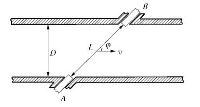 制藥廠污水流量計為獨立測量設(shè)備,由多個位于管線內(nèi)壁的超聲傳感器組成。傳感器由緊固機(jī)械裝置插入管道中,超聲脈沖被 2 個傳感器交替地發(fā)射和接收。由于電磁在逆流和順流情況下的傳輸時間 tu 和 t d 不同,通過時差法可以計算得到流體流速,工作原理如圖 1 所示。制藥廠污水流量計還可以配置成雙向計量模式,精度不變。
